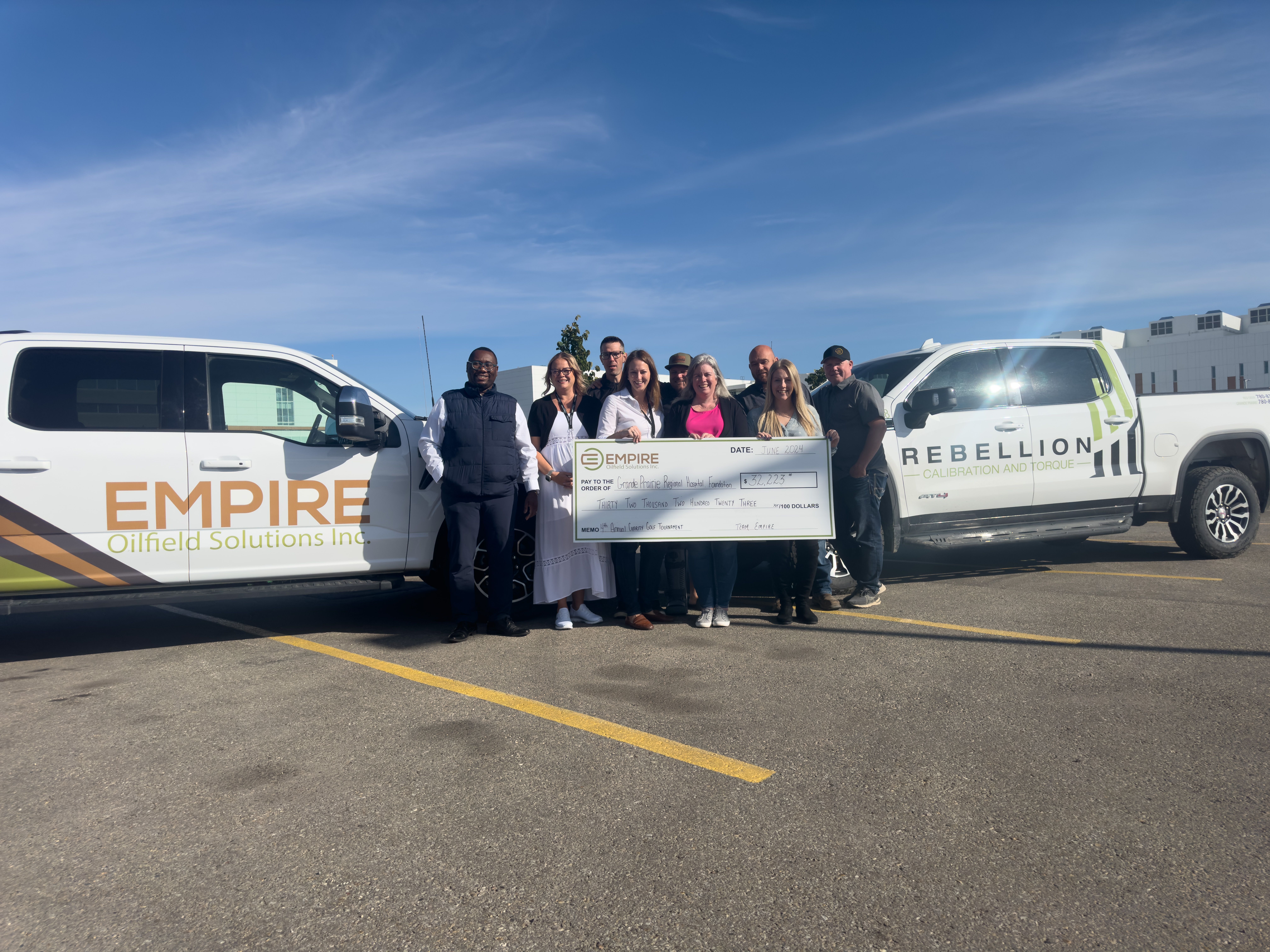 At Empire Oilfield Solutions, we believe that strong communities build strong businesses. Over the past five years, we've proudly donated over $200,000 to local charities and community initiatives. Our signature annual charity golf tournament benefits the Grande Prairie Regional Hospital Foundation, and we've been active supporters of STARS Air Ambulance, contributing to life-saving emergency medical services across Alberta.